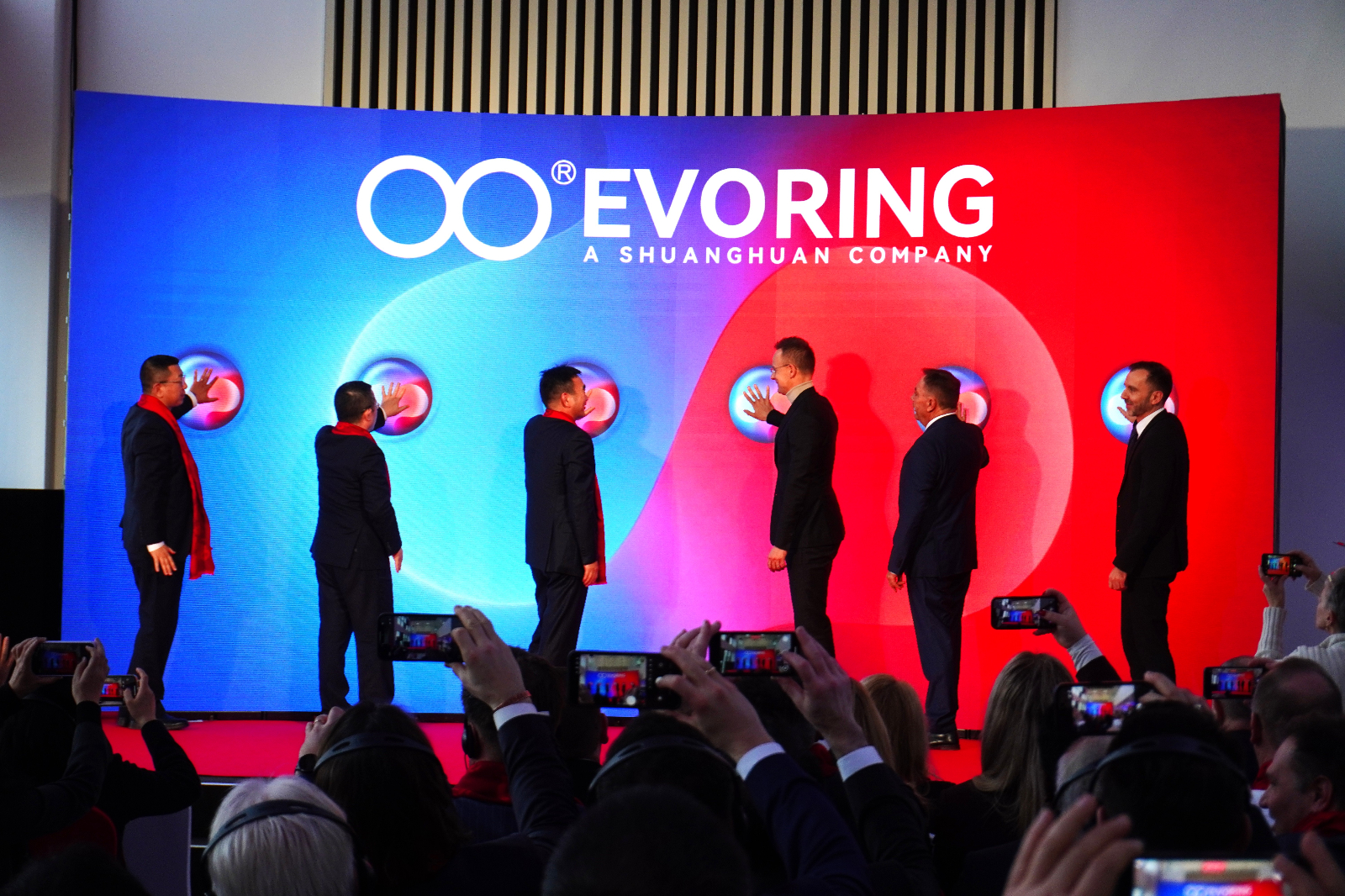 儀式現(xiàn)場,中國駐匈牙利大使館、匈牙利政府、雙環(huán)傳動各位領(lǐng)導(dǎo)共同登臺,按動開工儀式啟動按鈕。現(xiàn)場掌聲雷動,在各位領(lǐng)導(dǎo)與嘉賓的見證與祝福下,EVORING新工廠正式投產(chǎn)運(yùn)營,雙環(huán)傳動揭開新的發(fā)展篇章!